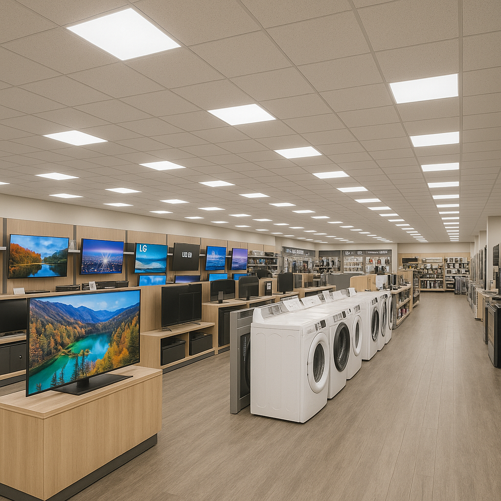 Showrooms and large retail stores require lighting that highlights products, creates ambiance, and enhances the shopping experience. Poor or uneven lighting can make displays look dull, distort colors, and reduce customer engagement.