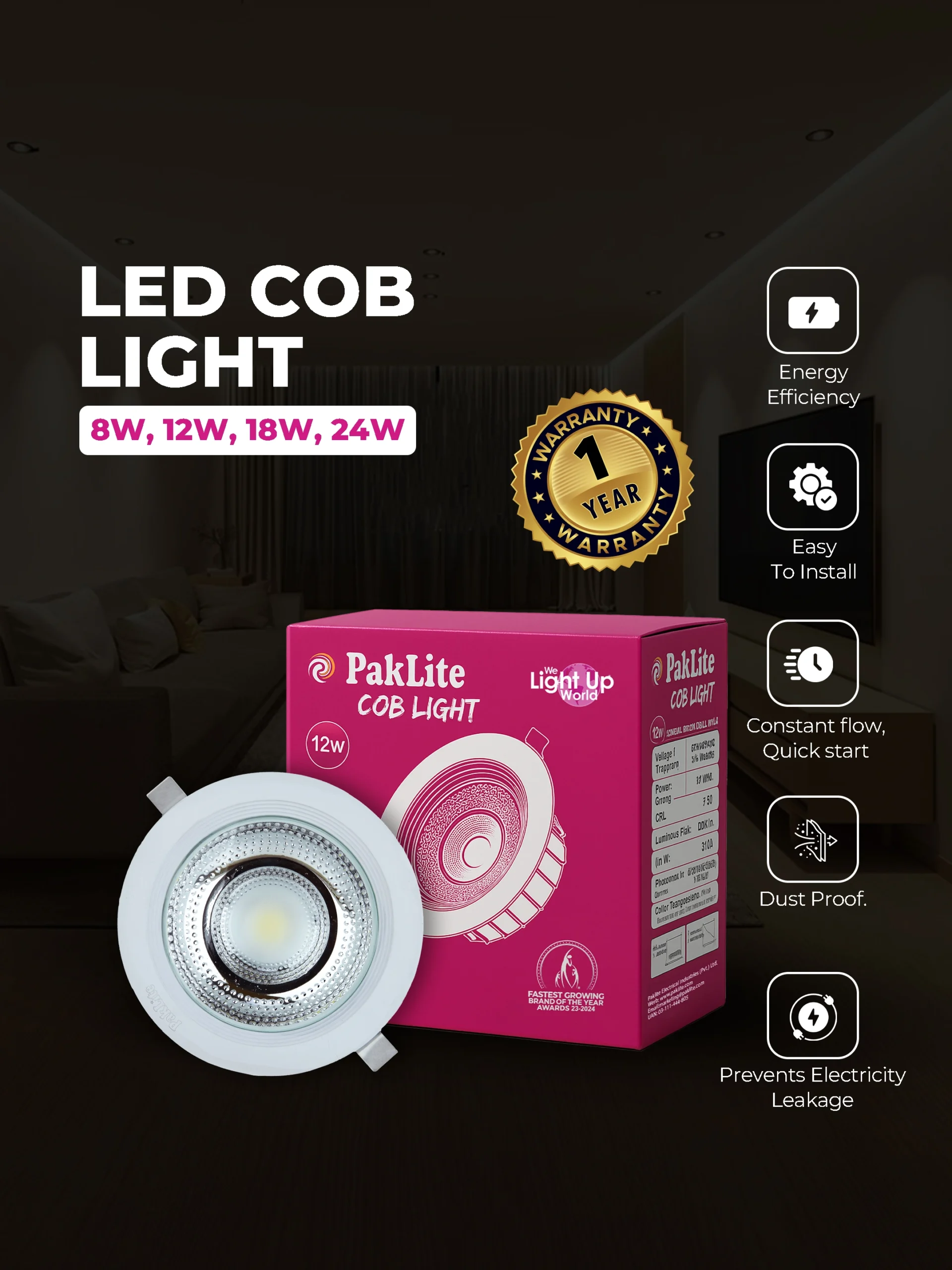 COB technology ensures stronger brightness with uniform light distribution. It produces clear illumination while consuming less energy compared to traditional lighting solutions.