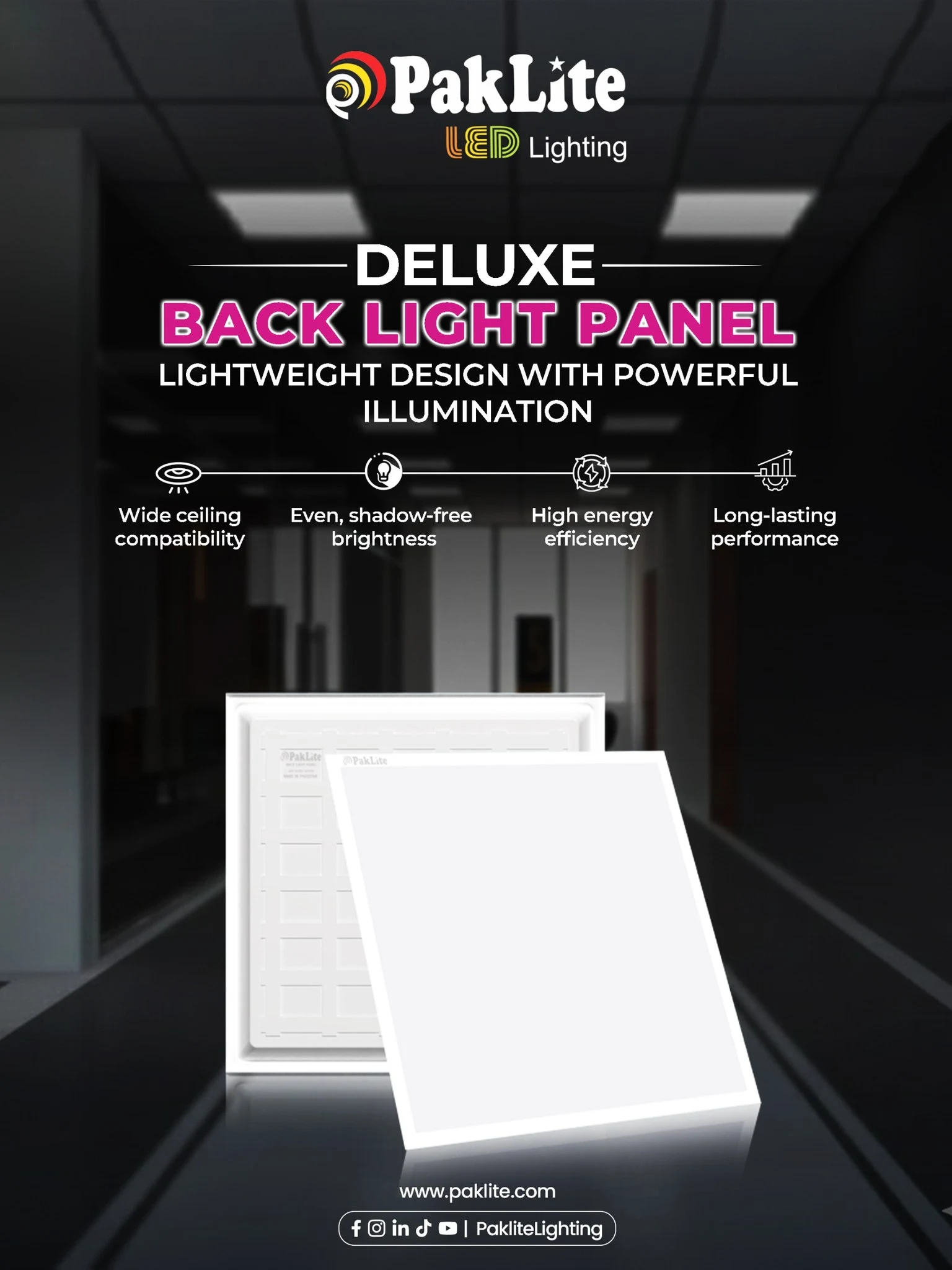 Upgrade your lighting experience with the PakLite LED Deluxe Back Light Panel — a modern, energy-efficient solution designed to deliver superior brightness, elegant aesthetics, and long-lasting performance. Whether used for offices, commercial buildings, retail spaces, or residential interiors, this LED backlight panel provides smooth, glare-free illumination that enhances any environment.