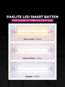 The PakLite LED Smart Batten is available in multiple color temperatures to suit different environments and preferences.