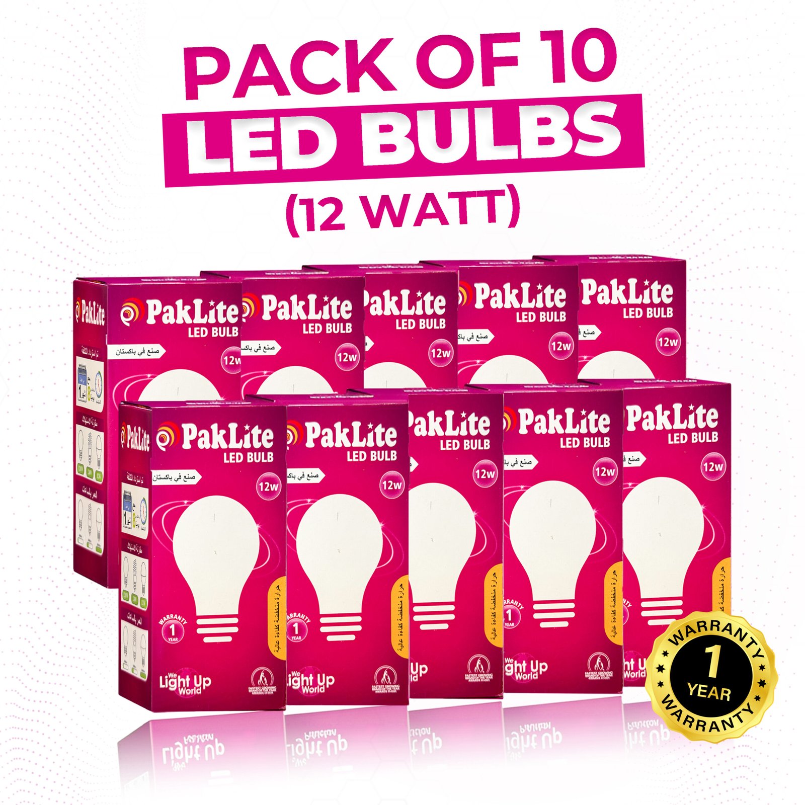 To give you peace of mind, every bulb comes with a 1-year warranty, ensuring dependable quality and customer satisfaction. For homes, small businesses, shops, and offices, the Pack of 10 LED Bulbs 12W is a smart choice for bright, efficient, and long-lasting lighting.