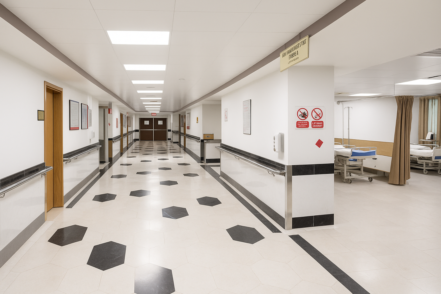 - Uneven and glare-prone lighting affecting patient comfort and staff efficiency